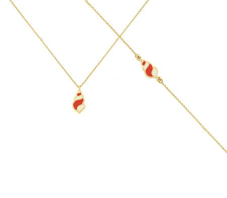 Κολιέ - βραχιόλι σε κίτρινο χρυσό με στοιχείο κοχύλι και σμάλτο