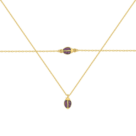 Κολιέ - βραχιόλι σε κίτρινο χρυσό με στοιχείο πασχαλίτσα και μωβ ζιργκόν