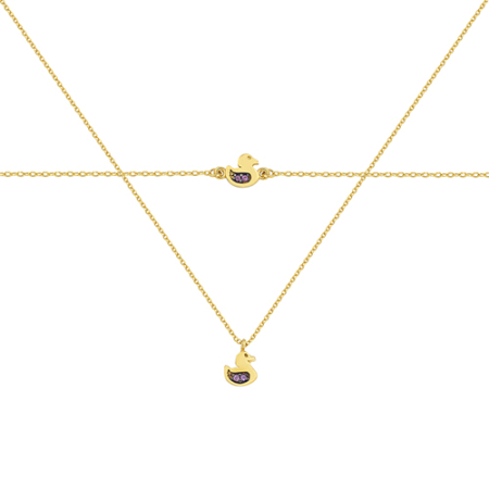 Κολιέ - βραχιόλι σε κίτρινο χρυσό με στοιχείο παπάκι και μωβ ζιργκόν