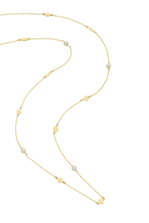 Κολιέ σε κίτρινο χρυσό με μαργαριτάρια και διάφορα μοτίβα.