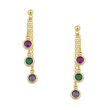 Σκουλαρίκια σε κίτρινο χρυσό με double πέτρες, διαθέσιμο σε πολυάριθμους συνδυασμούς χρωμάτων.