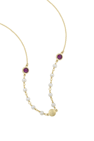 Κολιέ Σε Κίτρινο Χρυσό Με Double Πέτρες, διαθέσιμο σε πολλά χρώματα πετρών.