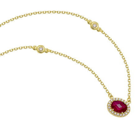 Κολιέ σε κίτρινο χρυσό με double rubin πέτρα & λευκά ζιργκόν, διαθέσιμο και με άλλες πέτρες(aqua marine, citrine, peridot, αμέθυστος).