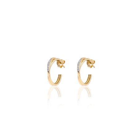 Σκουλαρίκια κρίκοι σε κίτρινο χρυσό με λευκά ζιργκόν
