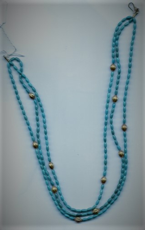 Κολιέ με τριπλή σειρά τυρκουάζ Αριζόνας και χρυσά στοιχεία.