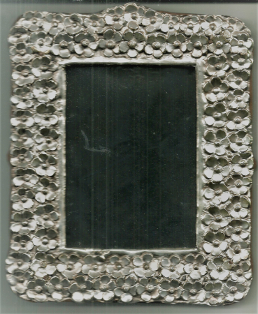 Ασημένια κορνίζα χειροποίητη με δύο σειρές ανάγλυφα άνθη, 9 Χ 12,5 εκ.