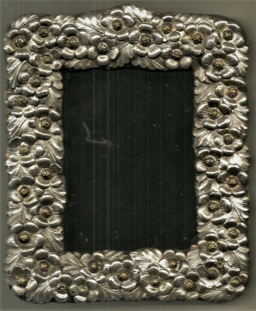 Ασημένια κορνίζα χειροποίητη με ανάγλυφα άνθη, 9 Χ 12εκ.