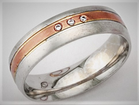 Βέρα δίχρωμη σε λευκό και ροζ χρυσό με πέτρες ζιργκόν