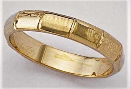 Βέρα σε κίτρινο χρυσό με κάθετες χαράξεις και ματ και λουστρέ τμήματα.