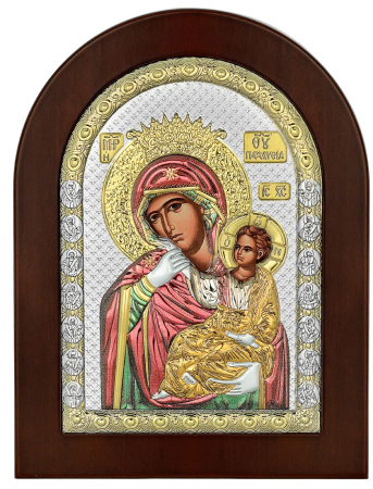 Παναγία παραμυθία, σε ασήμι με χρύσωμα, ή με χρώματα από σμάλτο.