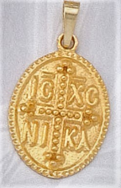 Κωνσταντινάτο "IC XC NIKA" με οβάλ σχήμα σε κίτρινο χρυσό.
