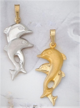 Μενταγιόν με 2 δελφίνια σε κίτρινο ή λευκό χρυσό.