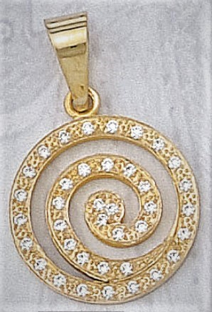 Μενταγιόν σπείρα σε κίτρινο χρυσό με λευκά ζιργκόν, διαθέσιμο και σε λευκό χρυσό.