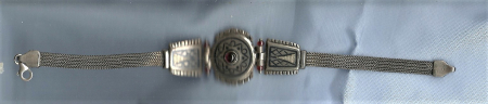 Βραχιόλι παραδοσιακό χειροποίητο "σαβάτι" με κυκλικό κεντρικό στοιχείο με γεωμετρικά διακοσμητικά σχέδια και κόκκινους ημιπολύτιμους λίθους