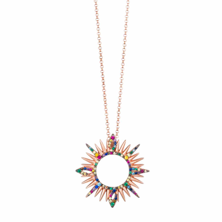 Κολιέ από ορείχαλκο με ροζ χρύσωμα "ήλιος" και πολύχρωμα ζιργκόν, διαθέσιμο και σε κίτρινο χρύσωμα