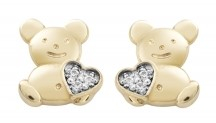 Σκουλαρίκια παιδικά καρφωτά σε κίτρινο χρυσό με λευκά ζιργκόν σε σχήμα αρκουδάκι
