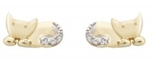 Σκουλαρίκια παιδικά καρφωτά σε κίτρινο χρυσό με λευκά ζιργκόν σε σχήμα γατάκι