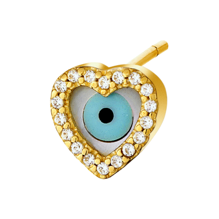 Σκουλαρίκια μάτι καρφωτά σε κίτρινο χρυσό με λευκά ζιργκόν σε σχήμα καρδιά