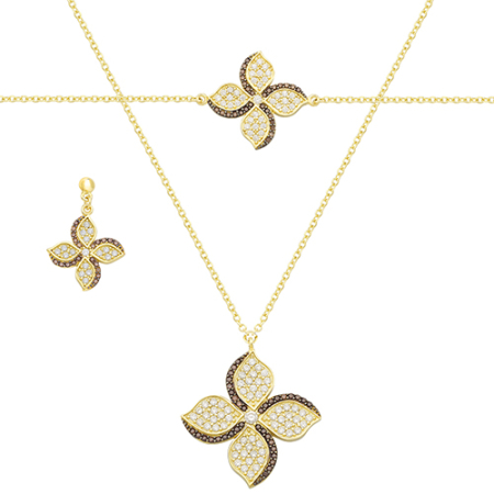 Καδενωτό Σετ Σε Κίτρινο Χρυσό με λευκά και μαύρα ζιργκόν.