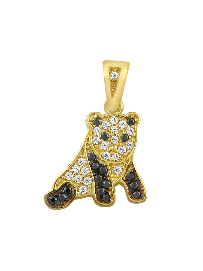 Μενταγιόν σε σχήμα πάντα σε κίτρινο χρυσό με λευκά και μαύρα ζιργκόν. Διατίθεται και σε λευκό.