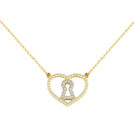Μενταγιόν σε σχήμα καρδιάς δίχρωμο με λευκά ζιργκόν.