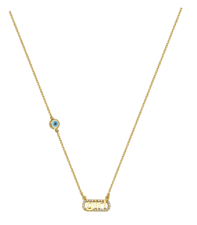 Κολιέ σε ροζ χρυσό με στοιχεία μάτι, τη λέξη girl και ζιργκόν