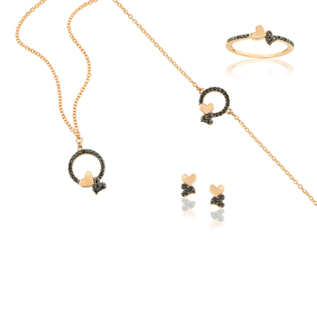 Καδενωτό Σετ Σε Ροζ Χρυσό με στοιχεία καρδιές και μαύρα ζιργκόν.