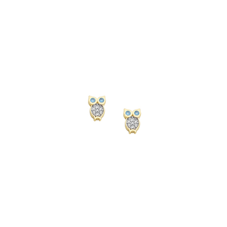 Σκουλαρίκια καρφωτά σε κίτρινο χρυσό με ζιργκόν σε σχήμα κουκουβάγιας