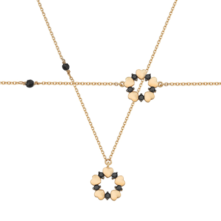 Κολιέ - Βραχιόλι Σε Ρόζ Χρυσό Με Στοιχεία Καρδιά και Με Μαύρα Ζιργκόν
