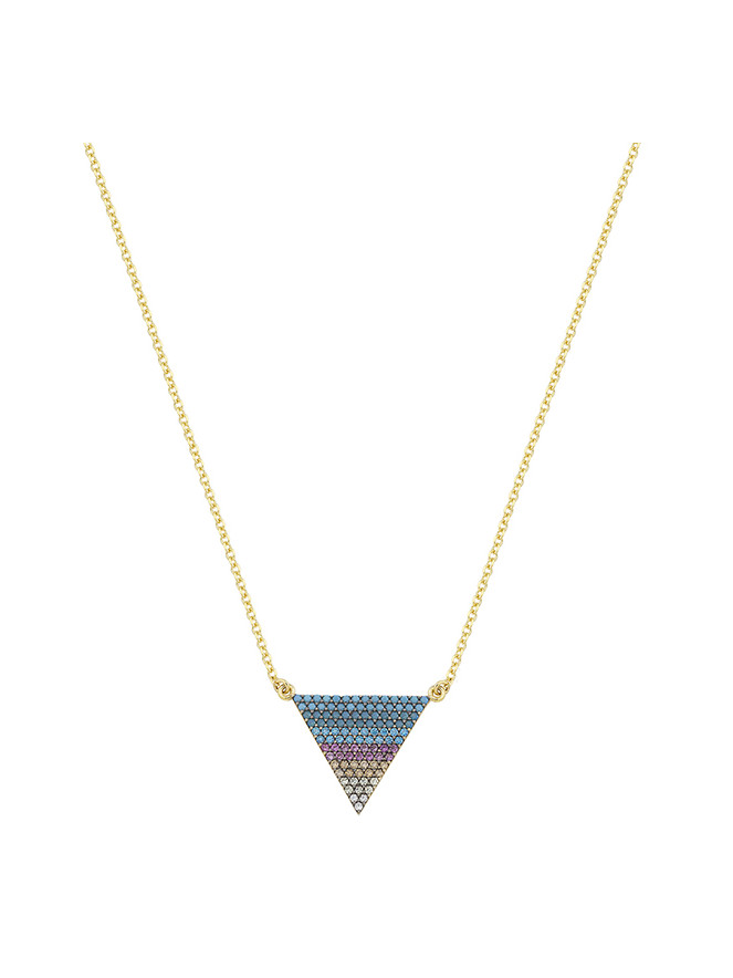 Κολιέ Σε Κίτρινο Χρυσό Με Ρόζ-Οινοπνευματί-Κίτρινα Ζιργκόν, Milky και Τυρκουάζ