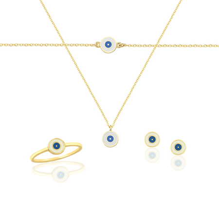 Κολιέ - βραχιόλι - δαχτυλίδι - σκουλαρίκια σε κίτρινο χρυσό με σμάλτο
