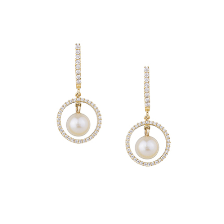 Σκουλαρίκια Κρεμαστά Σε Κίτρινο Χρυσό Με Ζιργκόν Και Μαργαριτάρι