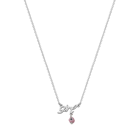 Κολιέ σε λευκόχρυσο με μάτι και τη λέξη girl