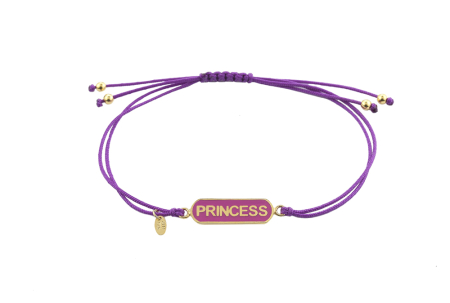 Βραχιόλι Με Μωβ Κορδόνι Και Στοιχείο Τη Λέξη Princess Με Μωβ Σμάλτο