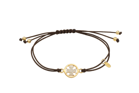 Βραχιόλι Με Καφέ Κορδόνι Και Στοιχείο Σταυρό Με Ζιργκόν