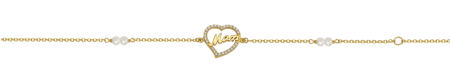 Βραχιόλι σε κίτρινο χρυσό με στοιχεία καρδιά, την λέξη mom και ζιργκόν